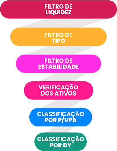 E, por último, o de classificação por Dividend Yield. Aqui, selecionamos, entre os FIIs que possuem maior potencial de valorização, aqueles que mais pagam dividendos, e de forma consistente e previsível.