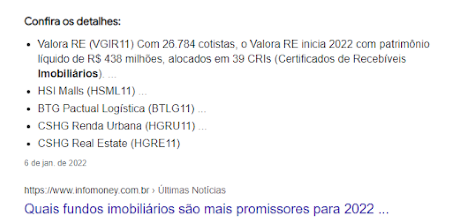 Aqui é onde entendemos se o fundo é “bonito de olhar” ou não, se ele possui mais de 3 imóveis e mais de 3 inquilinos. Isso é importante para garantir que os FIIs nos quais vamos investir possuem boa diversificação intrínseca, controlando ainda mais a nossa exposição ao risco.